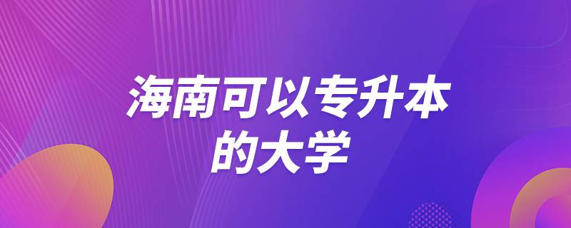 海南专升本学校有:海南大学,海南师范学院,,海南医学院,海口经济学院,三亚学院,海南热带海洋学院等。海南可以报考网络教育专升本学校,不限制报考区域,有、、、、、、、、、(医学)、、、等。
