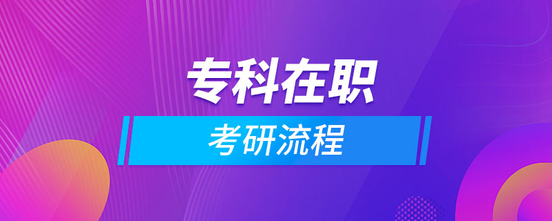 专科在职考研流程:一般10月开始网上报名;11月进行现场确认;12月最后一个周末初试;次年2月可查询成绩;3-5月复试、调剂;通过之后,6月获取录取通知书;9月正式入学。可通过同等学力申硕、专业硕士、...
